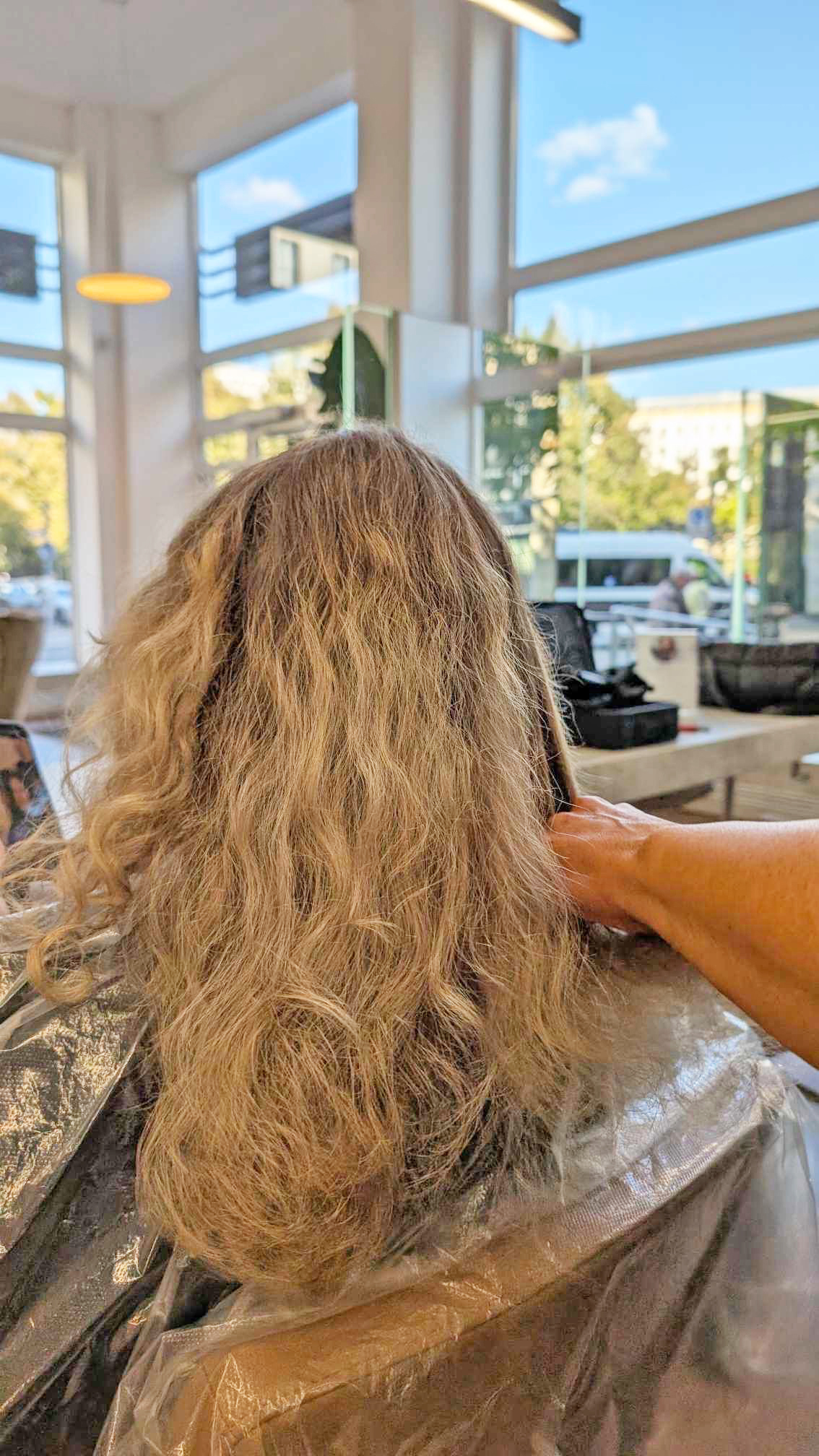 Mit geschultem Blick arbeitete Jessy gezielt an den Übergängen und sorgte dafür, dass sich die Farbe perfekt in Sophies Naturhaar einfügt – für ein Ergebnis, das natürlich wirkt und trotzdem beeindruckt.